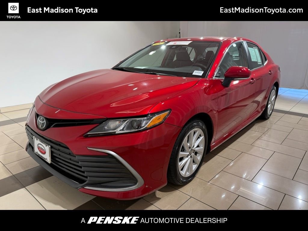 Certified. CARFAX One-Owner. New Tires, Auto-Dimming Rear-View Mirror, Blind Spot Monitor w/Rear Cross Traffic Alert, Convenience Package, Heated Exterior Mirrors w/Turn Signal Indicators, HomeLink, Smart Key System w/Push Button Start, 4-Wheel Disc Brakes, 6 Speakers, 7.5J x 17 Alloy Wheels, ABS brakes, Air Conditioning, Alloy wheels, AM/FM radio: SiriusXM, Apple CarPlay/Android Auto, Auto High-beam Headlights, Automatic temperature control, Brake assist, Bumpers: body-color, Delay-off headlights, Driver door bin, Driver vanity mirror, Dual front impact airbags, Dual front side impact airbags, Electronic Stability Control, Emergency communication system: Safety Connect (1-year trial), Exterior Parking Camera Rear, Fabric Seat Trim, Four wheel independent suspension, Front anti-roll bar, Front Bucket Seats, Front Center Armrest, Front dual zone A/C, Front reading lights, Fully automatic headlights, Illuminated entry, Knee airbag, Low tire pressure warning, Occupant sensing airbag, Outside temperature display, Overhead airbag, Overhead console, Paint Protection Film (TMS), Panic alarm, Passenger door bin, Passenger vanity mirror, Power door mirrors, Power driver seat, Power steering, Power windows, Radio data system, Radio: Audio, Rear anti-roll bar, Rear seat center armrest, Rear side impact airbag, Rear window defroster, Remote keyless entry, Security system, Speed control, Speed-sensing steering, Split folding rear seat, Steering wheel mounted audio controls, Tachometer, Telescoping steering wheel, Tilt steering wheel, Traction control, Trip computer, Variably intermittent wipers, New Air Filter, New Wipers, 2 Sets Of Keys, Certified pre-owned, BLIND SPOT MONITOR, Auto-Dimming Rear-View Mirror, Blind Spot Monitor w/Rear Cross Traffic Alert, Convenience Package, Heated Exterior Mirrors w/Turn Signal Indicators, HomeLink, Smart Key System w/Push Button Start. file:///lglge Red 2023 Toyota Camry LE FWD 8-Speed Automatic 2.5L I4 DOHC 16V 28/39 City/Highway MPG