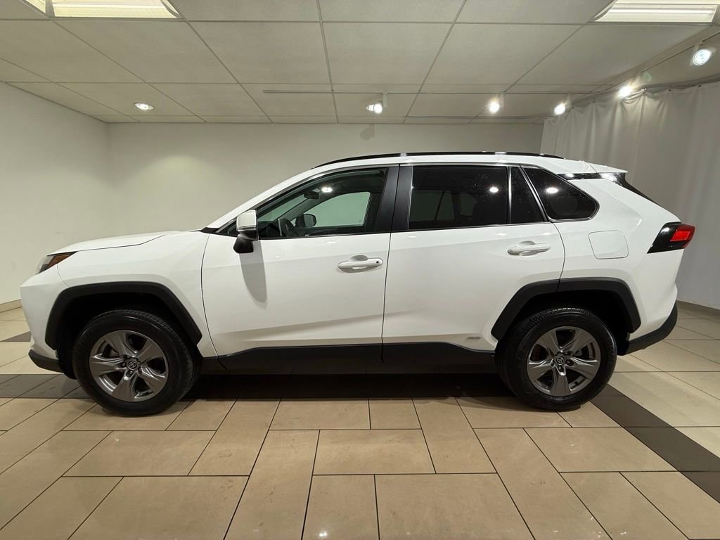 Certified. Clean CARFAX. CARFAX One-Owner. New Tires, 4-Wheel Disc Brakes, 6 Speakers, ABS brakes, Air Conditioning, Alloy wheels, AM/FM radio: SiriusXM, Auto High-beam Headlights, Automatic temperature control, Brake assist, Bumpers: body-color, Delay-off headlights, Driver door bin, Driver vanity mirror, Dual front impact airbags, Dual front side impact airbags, Electronic Stability Control, Emergency communication system: Safety Connect (1-year trial), Exterior Parking Camera Rear, Fabric Seat Trim, Four wheel independent suspension, Front anti-roll bar, Front Bucket Seats, Front Center Armrest, Front dual zone A/C, Front reading lights, Fully automatic headlights, Heated door mirrors, Illuminated entry, Knee airbag, Low tire pressure warning, Occupant sensing airbag, Outside temperature display, Overhead airbag, Overhead console, Panic alarm, Passenger door bin, Passenger vanity mirror, Power door mirrors, Power driver seat, Power steering, Power windows, Radio data system, Radio: AM/FM/XM Audio System, Rear anti-roll bar, Rear seat center armrest, Rear window defroster, Rear window wiper, Remote keyless entry, Speed control, Speed-sensing steering, Split folding rear seat, Spoiler, Steering wheel mounted audio controls, Telescoping steering wheel, Tilt steering wheel, Traction control, Trip computer, Turn signal indicator mirrors, Variably intermittent wipers, Wheels: 17 x 7.0J Silver Aluminum Alloy, New Air Filter, New Wipers, 2 Sets Of Keys, Certified pre-owned. https://www.kbb.com/kbbreport/vb8q2 Ice Cap 2025 Toyota RAV4 Hybrid XLE AWD eCVT 2.5L 4-Cylinder 41/38 City/Highway MPG