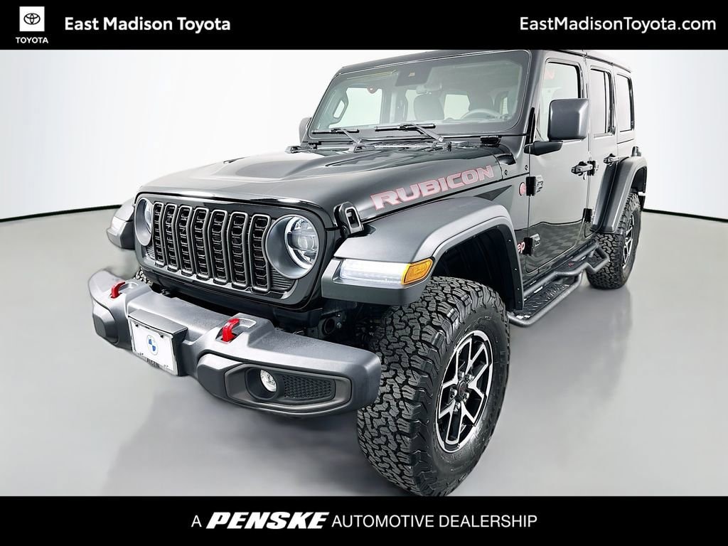 Clean CARFAX. 4-Wheel Disc Brakes, 4.10 Rear Axle Ratio, 4G LTE Wi-Fi Hot Spot, 8 Speakers, 97 MPH Vehicle Max Speed Calibration, ABS brakes, Air Conditioning, Alloy wheels, AM/FM radio: SiriusXM, Apple CarPlay, Apple CarPlay/Android Auto, Automatic temperature control, Aux Battery, Auxiliary Switches, Body Color 3-Piece Hard Top, Brake assist, Class II Receiver Hitch, Cloth Low-Back Bucket Seats, Compass, Connectivity - US/Canada, Convenience Group, Delay-off headlights, Driver door bin, Driver vanity mirror, Dual front impact airbags, Dual front side impact airbags, Electronic Stability Control, Emergency communication system: Jeep Connect, Freedom Panel Storage Bag, Front anti-roll bar, Front Bucket Seats, Front Center Armrest w/Storage, Front dual zone A/C, Front fog lights, Front License Plate Bracket (DISC), Front reading lights, Fully automatic headlights, Google Android Auto, Heated door mirrors, Heated Front Seats, Heated Steering Wheel, Illuminated entry, Integrated roll-over protection, Low tire pressure warning, MOPAR All-Weather Floor Mats, Non-Lock Fuel Cap w/o Discriminator, Occupant sensing airbag, Outside temperature display, Overhead airbag, Panic alarm, ParkView Rear Back-Up Camera, Passenger door bin, Passenger vanity mirror, Performance Suspension, Power door mirrors, Power steering, Power windows, Quick Order Package 24R Rubicon, Radio data system, Radio: Uconnect 5 w/12.3 Display, Rear anti-roll bar, Rear reading lights, Rear Window Defroster, Rear Window Wiper/Washer, Remote keyless entry, Security system, Speed control, Split folding rear seat, Steering wheel mounted audio controls, Stop-Start Dual Battery System, Tachometer, Telescoping steering wheel, Tilt steering wheel, Traction control, Trip computer, Universal Garage Door Opener, Variably intermittent wipers, Voltmeter, Wheels: 17 x 7.5 Machined/Painted Black. Black Clearcoat 2025 Jeep Wrangler Rubicon 4WD 8-Speed Automatic 3.6L V6 24V VVT 18/23 City/Highway MPG