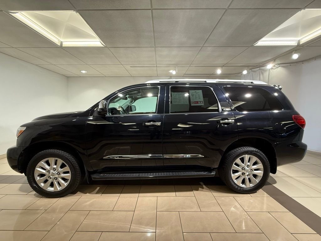Clean CARFAX. CARFAX One-Owner. New Brakes, Local Trade, Navigation system: Dynamic Navigation with up to 3-year trial, 15 Speakers, 3rd row seats: split-bench, 4-Wheel Disc Brakes, 4.30 Axle Ratio, A/V remote, ABS brakes, Adaptive suspension, Air Conditioning, Alloy wheels, AM/FM radio: SiriusXM, Apple CarPlay/Android Auto, Auto High-beam Headlights, Auto tilt-away steering wheel, Auto-dimming door mirrors, Auto-dimming Rear-View mirror, Auto-leveling suspension, Automatic temperature control, Brake assist, Bumpers: body-color, Compass, Delay-off headlights, Driver door bin, Driver vanity mirror, Dual front impact airbags, Dual front side impact airbags, Electronic Stability Control, Emergency communication system: Safety Connect with 1-year trial, Exterior Parking Camera Rear, Four wheel independent suspension, Front anti-roll bar, Front Bucket Seats, Front Center Armrest, Front dual zone A/C, Front fog lights, Front Heated & Ventilated Bucket Seats, Front reading lights, Fully automatic headlights, Garage door transmitter: HomeLink, Headlight cleaning, Headphones, Heated door mirrors, Heated front seats, Heated rear seats, Illuminated entry, Knee airbag, Leather steering wheel, Low tire pressure warning, Memory seat, Occupant sensing airbag, Outside temperature display, Overhead airbag, Overhead console, Panic alarm, Passenger door bin, Passenger vanity mirror, Perforated Leather Seat Trim, Power door mirrors, Power driver seat, Power Liftgate, Power moonroof, Power passenger seat, Power steering, Power windows, Radio: Premium Audio w/Nav/JBL/Clari-Fi, Rear air conditioning, Rear anti-roll bar, Rear reading lights, Rear seat center armrest, Rear window defroster, Rear window wiper, Reclining 3rd row seat, Remote keyless entry, Roof rack, Security system, Speed control, Speed-sensing steering, Split folding rear seat, Spoiler, Steering wheel memory, Steering wheel mounted audio controls, Tachometer, Telescoping steering wheel, Tilt steering wheel, Traction control, Trip computer, Turn signal indicator mirrors, Variably intermittent wipers, Ventilated front seats, Voltmeter, Wheels: 20 x 8 Diamond-Cut Finish Alloy, Wireless Headphones, New Air Filter, New Wipers, Navigation system: Dynamic Navigation with up to 3-year trial. https://www.kbb.com/kbbreport/b8t15 Midnight Black Metallic 2020 Toyota Sequoia Platinum 4WD 6-Speed Automatic 5.7L V8 13/17 City/Highway MPG