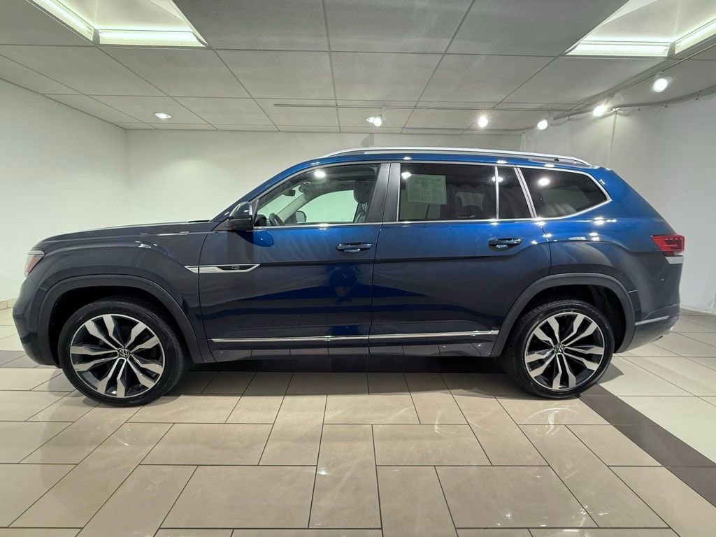 Clean CARFAX. CARFAX One-Owner. Local Trade, 3.60 Axle Ratio, 3rd row seats: split-bench, 4-Wheel Disc Brakes, 6 Speakers, ABS brakes, Active Blind Spot Monitor, Air Conditioning, Alloy wheels, AM/FM radio: SiriusXM, Auto High-beam Headlights, Auto-dimming Rear-View mirror, Automatic temperature control, Brake assist, Bumpers: body-color, Compass, Delay-off headlights, Driver door bin, Driver vanity mirror, Dual front impact airbags, Dual front side impact airbags, Electronic Stability Control, Emergency communication system: VW Car-Net services (capabilities require enrollment or subscription), Exterior Parking Camera Rear, Four wheel independent suspension, Frameless Self-Dimming Rearview Mirror, Front anti-roll bar, Front Bucket Seats, Front Center Armrest, Front dual zone A/C, Front fog lights, Front reading lights, Fully automatic headlights, Heated Comfort Front Bucket Seats, Heated door mirrors, Heated front seats, Heated steering wheel, Heavy Duty Trunk Liner w/VW CarGo Blocks, Illuminated entry, Leather Shift Knob, Low tire pressure warning, MDO Package (Bench Seat), Memory seat, Navigation System, Occupant sensing airbag, Outside temperature display, Overhead airbag, Overhead console, Panic alarm, Passenger door bin, Passenger vanity mirror, Perforated V-Tex Leatherette Seating Surfaces, Power door mirrors, Power driver seat, Power Liftgate, Power moonroof, Power passenger seat, Power steering, Power windows, Privacy Cover, Radio data system, Rain sensing wipers, Rear air conditioning, Rear anti-roll bar, Rear reading lights, Rear seat center armrest, Rear window defroster, Rear window wiper, Remote CD player, Remote keyless entry, Roof rack: rails only, Rubber Mats Kit - Bench Seat, Security system, Speed control, Speed-sensing steering, Split folding rear seat, Spoiler, Sport steering wheel, Standard Suspension, Steering wheel mounted audio controls, Tachometer, Telescoping steering wheel, Tilt steering wheel, Traction control, Trailer Hitch Extras, Trip computer, Turn signal indicator mirrors, Variably intermittent wipers, Wheels: 21 2-Tone Machined Alloy, New Wipers, New cabin filter. https://www.kbb.com/kbbreport/55zev Blue Metallic 2021 Volkswagen Atlas 3.6L V6 SEL R-Line AWD 8-Speed Automatic with Tiptronic 3.6L VR6 16/22 City/Highway MPG